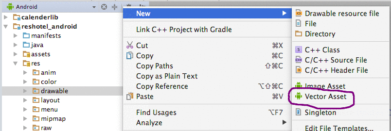 1. In the project Right click on the drawable directory.