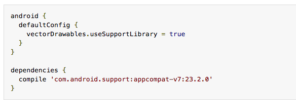 Before using Vector Asset Studio, you must add a statement to your build.gradle file: